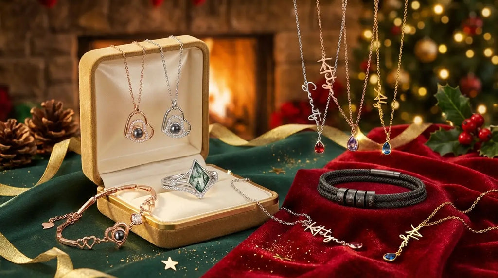 Personalized Photo Projection Bracelet with 2 Birthstones - Custom Picture Wristwear