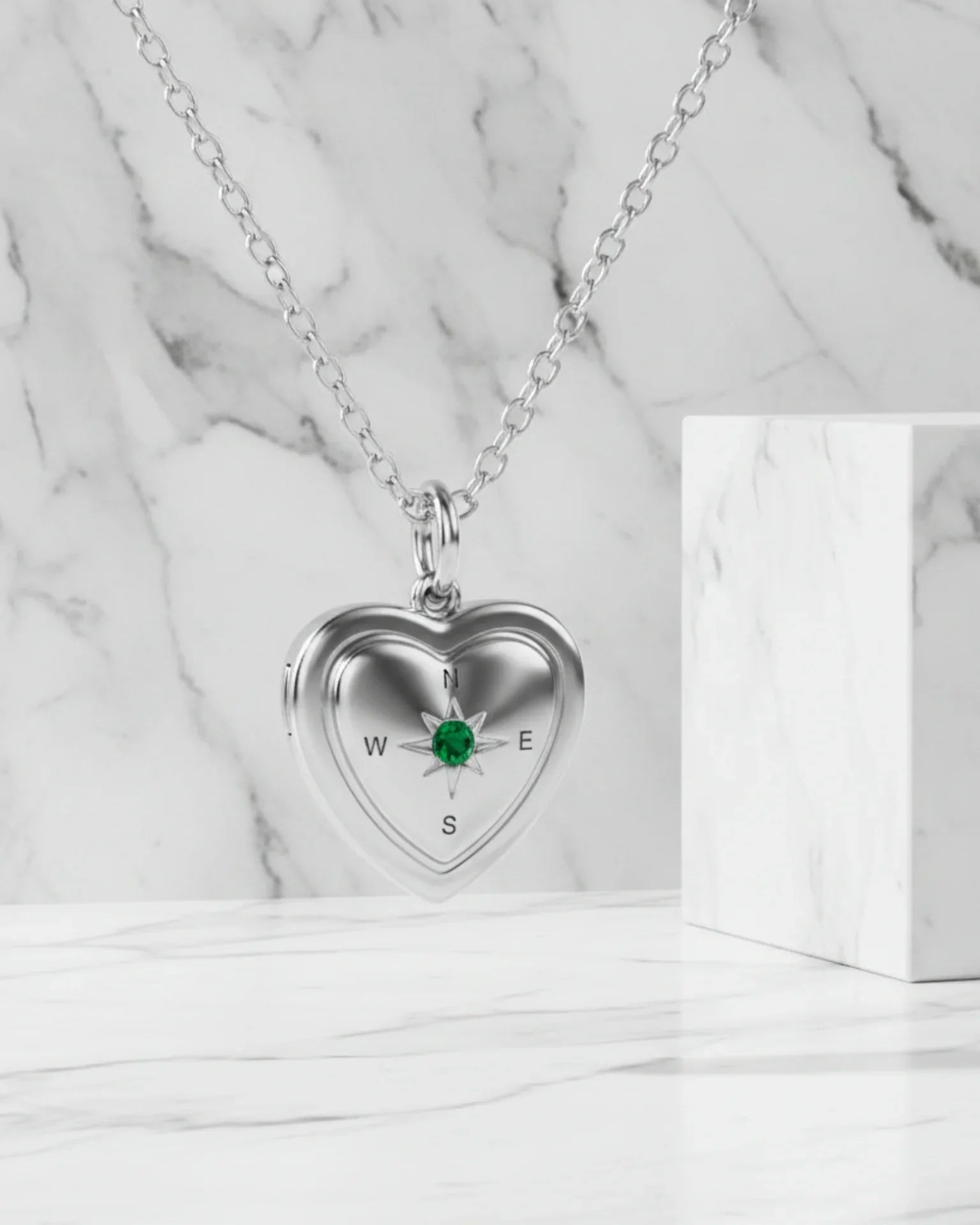 Keep your cherished memories close to your heart with this exquisite personalized photo locket. Featuring a sparkling birthstone compass design and custom engraving. Available in silver, gold, or rose gold finishes. The perfect keepsake gift.