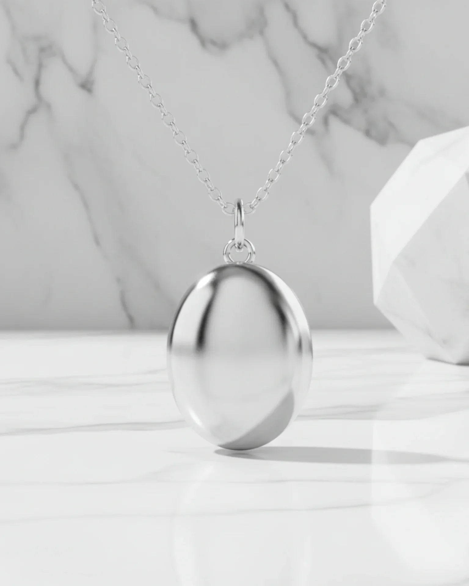 Sterling Silver Oval Engravable Photo Locket Necklace for Cherished Memories